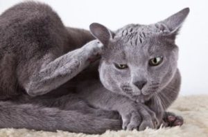 - от постоянных расчесов из-за укусов блох на коже кота появляются ссадины, болячки;