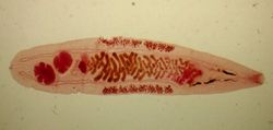 Как выглядят такие глисты? Данный вид паразитов имеет специальные присоски, с помощью которых червь плотно прикрепляется к тканям. Гельминты имеют плоское тело и достигают 18 мм в длину. Всего у них есть 2 вида присосок. Одна располагается на брюшине, а другая в области рта. Паразит имеет спереди слегка заостренную форму.