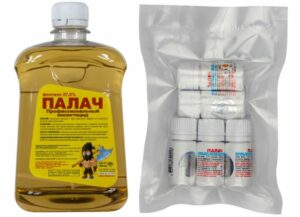 Препарат Палач представляет собой концентрированную маслянистую эмульсию со специфическим запахом. Перед использованием инсектицид нужно разводить с водой и далее распылять на поверхности.
