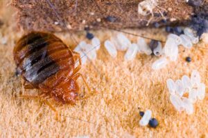 - Старые шкурки, сбрасываемые нимфами в процессе линьки. Они похожи на полупрозрачную желтовато-бежевую шелуху. Наибольшее количество находится рядом с гнездами клопов, но чем больше паразитов в квартире, тем больше мест, где они оставляют сброшенные хитиновые покровы.