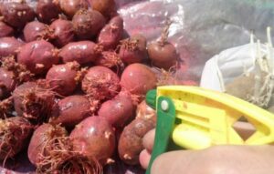 - Чеснок. Для приготовления рабочего раствора нужно измельчить 1 кг чеснока и залить его 10 л воды, а затем настоять в течение 2-х часов. Обработку средством нужно проводить за 3 часа до посадки. Чеснок помогает уберечь клубни от почвенных патогенов.