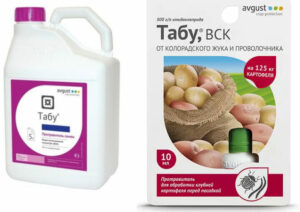 В продаже можно встретить препарат Табу и Табу ВСК. Они имеют одинаковый состав. Отличие заключается только в том, что первый препарат выпускается больших емкостях и предназначен для фермерских хозяйств. А второй фасуется в небольшие флаконы и пакеты. Его удобно использовать для обработки небольших участков с картофелем.
