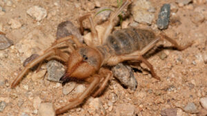 - Сольпуги закаспийские. Имеют длину тела около 7 см. Головогрудь этих насекомых имеет буровато-рыжий окрас, а брюшко серое, полосатое. Ареал обитания – территория Казахстана и Киргизии.
