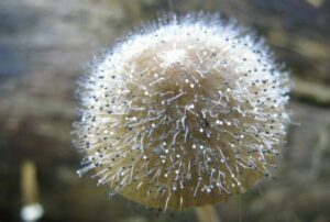 Основа вегетативного тела мукора – это мицелий или грибница. Так называется всего одна сильно разросшаяся клетка, которая имеет в цитоплазме множество ядер. Ветвящиеся тончайшие нити (гифы), утончающиеся к периферии, располагаются внутри субстрата или на его поверхности. Внутри нити не разделяют перегородки, что говорит о том, что плесневые грибы мукор не имеют клеточного строения. В спорангиях (утолщениях на окончаниях толстых нитей) созревают споры гриба.