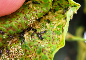 - На обратной стороне виды округлые бурые пятна.